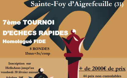 La 7ème édition du tournoi Rapide de Ste-Foy d’Aigrefeuille se déroulera le dimanche 22 février 2026.