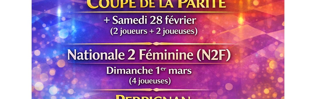 La Coupe de la Parité et la Nationale 2 Féminine Phase ZID Occitanie Est se tiendront le Week-End des Samedi 28 Février et Dimanche 1er Mars à PERPIGNAN.