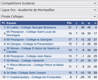 Retrouvez le classement détaillé de la finale académique des collèges.