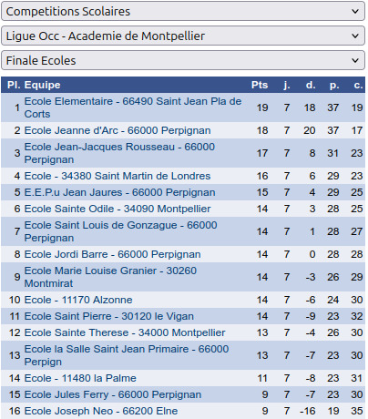 Retrouvez le classement détaillé de la finale académique des écoles.